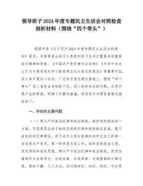 党支部2024年度组织生活会班子对照检查材料(四个带头,纪律规矩团结统一、党性纪律作风、清正廉洁、从严治党,检视剖析,发言提纲)20250303