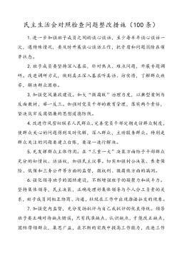 100条民主生活会对照检查问题整改措施100条个人领导班子对照检查材料检视剖析材料问题清单