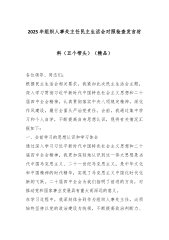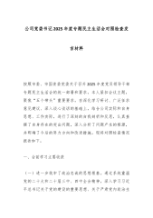 2025年组织人事处主任民主生活会对照检查发言材料(五个带头)(精品)各位领导、同志们:根据民主生活会相关要求,我紧扣此次民主生活会主题,深入学习贯彻习近平新时代中国特色社会主义思想和二十届四中全会精神,认真贯彻落实中央八项规定精神,深化作风建设,履行全面从严治党责任。会前,我通过集中学习和个人自学,不断提高自身思想认识,现将有关情况汇报如下:一、会前学习的思想认识和学习体会通过深入学习习近平新时代中国特色社会主义思想和二十届四中全会精神,我更加深刻地认识到这一伟大思想是当代中国马克思主义、二十一世纪马克思主义,是中华文化和中国精神的时代精华,实现了马克思主义中国化时代化新的飞跃。二十届四中全会为我们指明了前进的方向,对推动党和国家事业发展具有重大而深远的意义。在学习过程中,我深刻体会到作为...