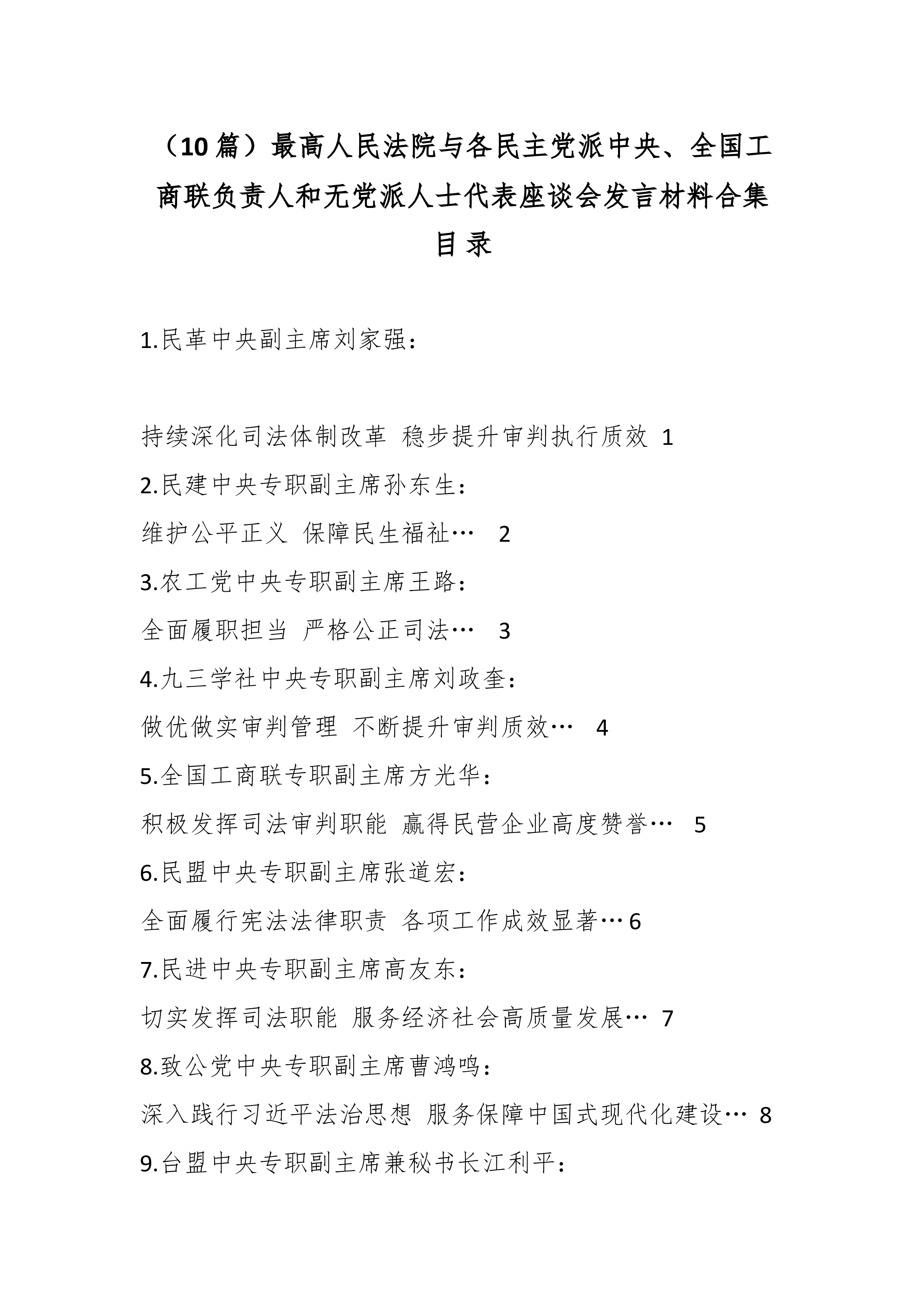 (10篇)最高人民法院与各民主党派中央、全国工商联负责人和无党派人士代表座谈会发言材料合集