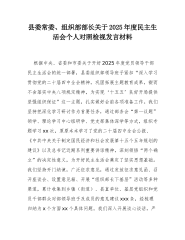 县委常委、组织部部长关于2025年度民主生活会个人对照检视发言材料