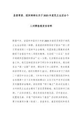 县委常委、组织部部长关于2025年度民主生活会个人对照检视发言材料根据中央、省委和市委关于开好2025年度党员领导干部民主生活会的统一部署,县委组织部领导班子紧扣“深入学习贯彻党的二十届四中全会精神,巩固拓展主题教育成果锲而不舍落实中央八项规定精神,为实现‘十五五’良好开局提供坚强组织保证”这一主题,扎实做好会前各项准备工作。我们坚持把深化学习研讨作为首要任务,通过部务会“第一议题”领学、理论学习中心组研学、党支部集体深学等方式,组织专题学习12次,原原本本学习了党的二十届四中全会公报、《中共中央关于制定国民经济和社会发展第十五个五年规划的建议》以及习近平总书记近期系列重要讲话精神,深刻领悟“两个确立”的决定性意义为开好民主生活会奠定了坚实思想基础。我们坚持开门纳谏,广泛征求意见,通过发放征...