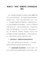 街道关于“两热”疫情防控工作的经验总结报告
