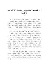 学习宣传贯彻党的二十届三中全会精神工作情况总结报告党的二十届三中全会胜利召开后,X坚持把学习宣传贯彻全会精神作为当前和今后一个时期的重要政治任务,根据X、X上级的通知要求,以坚定的政治自觉、严肃的政治态度、高昂的政治热情和强烈的责任担当,不断推动党的二十届三中全会精神在本系统落地见效。现将情况报告如下。一、广泛宣传,营造浓厚氛围。积极构建“线上十线下”多维立体学习格局,采取微信群推送和个人自学等形式,组织党员干部充分利用共产党员网、学习强国等平台,深入学习党的二十届三中全会精神;及时转载《人民日报》《新华社》等主流媒体关于党的二十届三中全会精神的文章、专题报道等,全方位、多角度、高频次宣传二十...