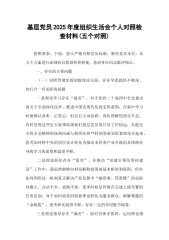 党员教师2025年度组织生活会个人对照检查材料(精品)根据支部关于召开2025年度组织生活会暨开展集中教育整顿工作的统一部署,本人紧扣会议主题,聚焦学习贯彻党的二十届四中全会精神,结合自身作为小学五年级语文教师兼班主任的岗位职责,严格对照党员标准,重点围绕“学习贯彻党的创新理论、加强党性锤炼、联系服务群众、发挥先锋模范作用、改作风树新风”五个方面,深入查摆自身存在的差距与不足,深刻剖析问题根源,并明确整改方向与措施。现将对照检查情况汇报如下。一、存在的主要问题(一)学习贯彻党的创新理论方面,系统钻研不深入,转化运用不充分一是理论学习碎片化,体系把握不完整。在学习党的创新理论,特别是党的二十届四中全会关于“发展素质教育,建设教育强国”的战略部署时,存在“用什么学什么”的实用主义倾向。满足于参加...