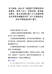 四个检视:2024年“检视学习贯彻党的创新理论、看学了多少、学得怎样,联系服务群众、看为身边群众做了什么实事好事,党员发挥先锋模范作用”四个方面组织生活会对照检查材料4篇文