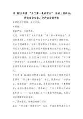在 2026 年度 “开工第一课讲安全” 活动上的讲话:讲安全会安全、守护安全保平安