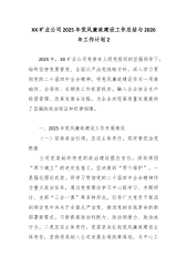XX矿业公司2025年党风廉政建设工作总结与2026年工作计划2