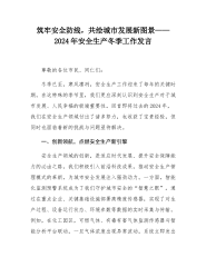 在2024年全市安全生产、消防安全暨治本攻坚三年行动工作推进会上的讲话