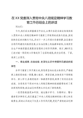 在XX党委深入贯彻中央八项规定精神学习教育工作总结会上的讲话
