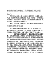 2023年在12月份安全生产例会上讲话同志们:当前,正值岁末年初关键时刻,全区进入保发展、保稳定的关键时期。召开会议的主要目的:一是深入学习贯彻习近平总书记的重要指示精神,各有关领导的批示精神,以案为戒,全力以赴抓好安全生产,切实维护人民群众生命财产安全,确保我区社会大局稳定。二是进一步统一思想,提高认识,再增措施,再鼓干劲,确保完成今年的各项目标任务。刚才,区安委通报了全区1-11月份安全生产工作情况,并对下一步工作提出了建议,我都同意,下来后要确保落实,见到成效。下面,我讲三点意见。一、深入学习贯彻习近平总书记重要指示精神,各有关领导的批示精神,始终把防范化解重大安全风险作为首要任务,坚决...