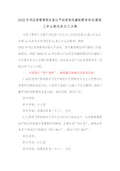 2022年市应急管理局全面从严治党党风廉政建设和反腐败工作主要任务分工方案为深入贯彻十九届中央纪委六次全会、自治区纪委xx届x次全会、市第xx次党代会和市纪委xx届x次全会精神,确保2022年市应急管理局全面从严治党、党风廉政建设和反腐败工作落细落实,按照《2022年xx市全面从严治党党风廉政建设和反腐败工作主要任务分工方案》部署要求,结合安全生产与应急管理实际,现提出如下分工方案。一、自觉践行“两个维护”,确保重大战略任务落地见效1.始终把学习贯彻落实习近平新时代中国特色社会主义思想作为首要和长期的政治任务,认真学习党的十九届六中全会精神,坚持不懈用党的创新理论武装头脑、指导实践、推动工作。...
