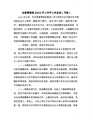 国有企业2022年度上半年工作总结及下半年工作计划上半年在集团公司党委的正确领导下,分公司始终把思想行动统一到习近平总书记重要指示批示精神上,坚决贯彻党的十九大和十九大历届全会精神,立足集团公司发展布局和产业布局,严格按照上级决策部署要求,牢牢把握“政治年、奋斗年、复杂年”的时势特征和工作目标,自觉提高政治站位,坚决扛起政治责任,全面保障安全生产运行,推动服务品质发展,较好的完成了各项工作。 第一部分上半年工作情况 一、以严格的标准抓安全服务 (一)落实落细安全生产责任,确保安全生产运行平稳可控 1.2022年是党的二十大召开之年,分公司充分认识到当前安全生产工作的重要性和复杂性,深入...