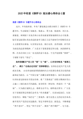 2025年《榜样9》观后感心得体会[9篇]合编供参考观看《榜样9》专题节目心得体会近日,中央组织部、中央广播电视总台联合制作了《榜样9》专题节目,生动展现了范振喜、钱素云、覃大清、陈清洲、刘小京、黄德宽、林则银7名党员和山东青岛新前湾集装箱码头公司党委、陆军某边防团红其拉甫边防连学习践行习近平新时代中国特色社会主义思想突出事迹,以及坚定信念、践行宗旨、改革创新、担当作为的高尚品质和精神。广大党员干部要汲取信仰力量,沐浴榜样光辉,在各自岗位上以一往无前的奋斗姿态,于无声处致敬“榜样”,于朝阳下续写“荣光”。始终紧攥共产党人的“根”与“魂”,心有信仰彰显“强国之志”,践行“功成必定有我”的铮铮誓言...