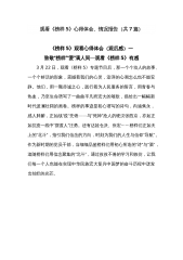 观看学习《榜样7》专题节目后心得体会发言稿汇编(4篇)观看学习《榜样7》专题节目后心得体会发言稿13月25日—3月26日,本人按照单位党组的安排,采取集中组织和分散学习相结合的方式,以电视直播,手机APP、网络搜索观看回放等形式,收听收看《榜样7》专题节目,主动对标先进、见贤思齐。在观看学习的过程中我觉得《榜样7》教育意义重大,是一堂生动的党性教育课,特别是这些榜样所诠释出的共产党人坚定理想信念、为民实干担当、勤勉敬业奉献精神,我无不流露出了敬佩之情。榜样事迹感人至深,榜样精神催人奋进。我们要主动对标榜样,看齐典型,不断汲取榜样的力量,提升自己的能力素质。《榜样7》专题节目的录制,就是为深入学...