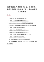 党支部2024年党建工作计划、工作要点、调研情况报告工作总结【共11篇word版范文】供参考