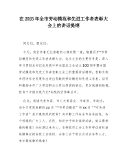 在2025年全市劳动模范和先进工作者表彰大会暨工会第五次代表大会上的讲话
