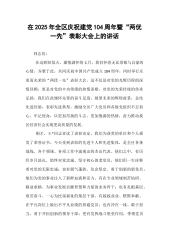 在2025年民政局庆祝建党104周年暨“两优一先”表彰大会上的讲话
