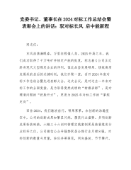 党委书记、董事长在2024对标工作总结会暨表彰会上的讲话:驭对标长风启中能新程同志们:东风浩荡满眼春,万里征程催人急。2025开局之年,我们成功取得了千万吨矿井核定产能的批复,标志着X公司正式跻身现代大型煤炭企业的序列。值此品鉴发展硕果、续航高质发展承前启后的关键时刻,我们齐聚一堂,召开2024年度对标工作总结会暨先进表彰大会。这次会议,是对过去一年来对标工作的全面复盘,是为取得斐然成绩的“树旗表彰”,是对理清问题的“把脉开方”,更是为2025年对标工作的“掌舵定向”。回首2024,我们踏浪前行,硕果累累。在创新的浩瀚星空中,公司的创新成果如繁星闪烁,屡获行业盛赞。多项创新成果斩获殊荣,六精三...