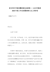 在XX县人民医院2025年总结大会暨2026年工作部署会上的讲话(精品)同志们、朋友们:大家好!今天,我们怀着无比激动和自豪的心情,齐聚一堂,隆重召开XX县人民医院2025年总结大会暨2026年工作部署会。这次会议,是在我们刚刚走过极不平凡、成就斐然的2025年,即将迈入承前启后、继往开来的2026年这一关键节点召开的一次重要会议。主要任务是,全面回顾总结过去一年的工作,表彰先进、鼓舞士气,科学谋划、系统部署新一年的目标任务,动员全院上下进一步统一思想、凝聚共识,以更加昂扬的斗志、更加饱满的热情,奋力开创医院高质量发展的新局面。受县委县政府的信任和重托,也受XX副县长、院党委XX书记的委托,在此,我谨代表医院党委和领导班子,向在座的各位,并通过你们,向辛勤奋战在各个岗位上的全体干部职工,向为...