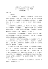 在校2021年度总结表彰大会上的讲话吉安市井冈山技工学校校长黄金根(2022年1月7日)各位老师:大家下午好!今天,我们相聚在一起,隆重召开吉安市井冈山技工学校2021年度总结表彰大会,借此机会,向在坐的每一位老师,每一位同事表示我最衷心的感谢。这次会议将载入我校办学史册,也是学校大事记中浓墨重彩的一笔,而今天与会的每一位老师、每一位同事,都将共同见证这一历史时刻。在准备召开年终总结会的这几天,我心潮澎湃,内心久久不能平复。千言万语道不尽,唯有感恩挂心头。感恩大家的选择;感恩大家在工作中的兢兢业业,辛勤付出;感恩所有关心学校,为学校发展作出积极贡献的同事们以及社会各界同仁,谢谢你们,你们辛苦了...