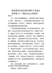 镇党委书记在庆祝中国共产党成立周年暨“七一”表彰大会上的讲话同志们:今天,我们在这里隆重集会,共同庆祝中国共产党成立101周年,表彰先进个人。目的是激励全镇党组织和广大党员干部砥砺奋进、担当实干、冲锋在前。为推动玉皇庙经济社会跨越发展做出新的更大贡献。今天受表彰的是各条战线、各个群体的优秀代表、先进典型。有以村支部书记为代表的农村干部,大家数十年如一日,奋战在“三农”工作一线,忙碌于田间地头、街头巷尾,在推进乡村振兴道路上勤勤恳恳、任劳任怨;有以人民教师为代表的一线职工,大家始终坚守在平凡的工作岗位上,尽职尽责、默默奉献,用辛劳和付出温暖了这座小镇;有以乡镇干部为代表的基层党员,大家长期扎根基...