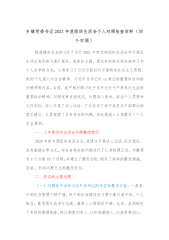 镇党委书记2021年度组织生活会个人对照检查材料(四个对照、五方面剖析原因)
