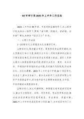XX市审计局2025年上半年工作总结 2025上半年在XX市委、市政府的坚强领导下,在上级审计机关的关心指导下,聚焦“查问题、找堵点、抓前端、治未病”理念,发挥好“经济卫士”作用。 一、主要工作成效 (一)奋楫笃行,以更强担当扎实履职尽责。 1.精准定位,推进重点项目。聚焦财政资金提质增效,加大预算执行审计力度,持续关注中央八项规定精神和过紧日子要求落实情况,促进财政资金发挥最大效益。紧盯人民群众最关心的最直接利益问题,持续关注民生、教育、农业农村、环境保护等领域的突出问题,及时揭示风险隐患,形成常态化、动态化震慑。2025年上半年总计开展16个项目审计,完成2个,基本完成6个。基本完成的市工业投资有限公司资产负债损益审计,将为我市经开区管理体制改革,为市委、市政府精准决策提供参考。...