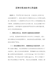 XX市XX区审计局2025年工作总结(精品)2025年,XX市XX区审计局在区委、区政府和上级审计机关的坚强领导下,坚持以习近平新时代中国特色社会主义思想为指导,深入贯彻党的二十大精神和习近平总书记关于审计工作的重要指示批示精神,紧紧围绕全区经济社会发展大局,依法全面履行审计监督职责,以高质量审计监督护航XX区经济社会高质量发展,各项工作取得显著成效。一、聚焦主责主业,财政审计监督效能实现新提升本年度,我局始终将财政审计作为审计工作的基石,着力深化预算执行和财政管理审计,推动财政资金提质增效,维护财经纪律的严肃性。(一)深化预算执行审计,保障财政运行规范有序。坚持审计监督全覆盖,对区级预算执行及其他财政收支情况进行了全面审计,重点关注财政资源统筹、预算编制与执行的规范性、重大政策资金的落地情...