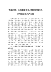 社区书记讲党课讲稿:扬八项规定之帆筑基层治理之基——以优良作风绘就社区治理同心圆同志们:大家好!当前,全党正在开展深入贯彻中央八项规定精神学习教育。中央八项规定,是新时代推进全面从严治党的重要突破口和切入点,为我们加强作风建设、提升治理能力指明了方向。今天,我就围绕深入贯彻中央八项规定精神学习教育,加强社区作风建设,提升基层治理能力和水平,和大家交流四个方面的内容。一、深刻认识中央八项规定精神对社区工作的重要意义(一)中央八项规定精神是加强社区党组织建设的根本遵循。社区党组织是党在基层的神经末梢,是联系群众、服务群众的桥梁和纽带。中央八项规定精神的核心是密切联系群众,这与社区党组织的职责使命高...