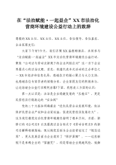 在“法治赋能·一起益企”XX市法治化营商环境建设公益行动上的致辞