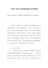 市科技局党组书记2025年度抓基层党建工作述职报告2025年,我坚持以新时代中国特色社会主义思想为指导,深入学习贯彻党的二十大和二十届三中、四中全会精神,全面落实新时代党的建设总要求和新时代党的组织路线,始终牢记“抓好党建是最大政绩”“第一身份是党的书记、第一职责是管党治党”的政治要求,自觉将基层党建工作置于全局工作的核心统领地位,紧密围绕市委、市政府中心工作,以“围绕科创抓党建、抓好党建促科创”为根本遵循,聚焦“党建与业务深度融合”“科技创新与产业创新深度融合”两条主线,着力打造“党建红”引领“科技蓝”特色品牌,努力将党的政治优势、组织优势转化为推动我市科技创新发展的强大动力和坚实保障,各项工作取得新进展、新成效。一、聚焦主责主业,筑牢政治根基,以坚强政治引领保障科技工作正确方向始终把党的...