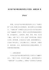 中建八局东北公司基础设施分公司党总支:铸牢“军魂匠心·沈铁亮剑”党建品牌以高质量党建引领轨道交通建设新标杆 提要:沈阳地铁6号线首府新区车辆段项目党支部以“军魂匠心·沈铁亮剑”党建品牌为统领,将中建八局“铁军文化”与新时代党建工作深度融合。面对地质复杂、管线迁改难、工期紧张三重挑战,品牌以“党旗+地铁车辆+利剑”为标识,构建“四维驱动”实践体系。 一、品牌创建背景 (一)项目攻坚:三大“硬骨头”亟待破解 沈阳地铁6号线是沈阳市“十四五”重点民生工程,首府车辆段作为全线规模最大、技术最复杂的控制性节点,面临三重挑战:1、地质风险突出:场地属富水岩溶地层,溶洞发育率达35%,桩基施工沉降控制精度要求±2mm;2、管线迁改梗阻:地下纵横分布电力、燃气等7类管线,涉及产权单位11家,协调难度...