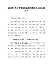 2024年度党支部党建工作总结[8篇]与2024年党支部工作总结【七篇】合编供参考党支部2024年度党建工作总结2024年,在上级党委的坚强领导下,公司党支部以习近平新时代中国特色社会主义思想为根本遵循,全面落实党的二十大精神及二十届二中、三中全会精神,紧紧围绕企业发展中心任务,积极推进党建各项工作。通过强化思想建设、组织建设、品牌建设和廉政建设等多个方面,取得了显著成效,为企业高质量发展提供了坚实的政治和组织保障。一、工作成效(一)固本培元,夯实思想建设。以学育人,厚植理论根基。党支部严格执行“第一议题”制度,全年组织集中学习37次、专题研讨12次,丰富学习形式、深化理论学习。特别是在4月份...