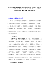 2024年度党支部党建工作总结[8篇]与2024年党支部工作总结【七篇】合编供参考