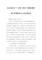 在全省机关“一支部一特色”党建品牌创建工作部署会议上的汇报发言