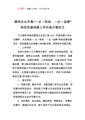 建筑企业开展“一点一特色、一企一品牌”特色党建创建工作实施方案范文