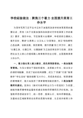经验材料:发挥“老党员之家”在基层治理中的引领作用离退休干部是党执政兴国的重要资源,如何顺应当下形势推进新时代离退休干部工作,**县以“美在金秋”老党员之家品牌建设为契机,给出了答案。一、精心选点,建在最前沿。认真把准品牌建设主脉,通过广泛征求离退休老同志意见,多方听取关工委、涉老协会以及社区意见,最终决定用好现成资源,将阵地建在阳光家园。一是坚持党建统领。紧紧扣住阵地主要面向离退休干部党组织和志愿团队等组织,主要服务离退休干部党员队伍和志愿者服务队伍等群体这一属性,明确工作方向,全力打造“党建+关建”、“党建+工建”等“党建+”特色亮点,将“美在金秋”老党员之家锻造成党建统领、齐头并进的大党...