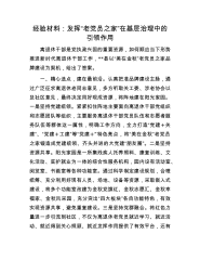 基层治理经验材料:发挥“老党员之家”在基层治理中的引领作用
