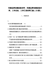 党建品牌创建经验材料:党建品牌创建经验材料、工作总结、工作汇报材料汇编(25篇)