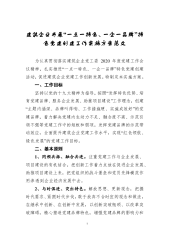 1建筑企业开展“一点一特色、一企一品牌特色党建创建工作实施方案范文为认真贯彻落实建筑企业党工委2020年度党建工作会议精神扎实推进“一点一特色、一企一品牌”特色党建创建活动促进建筑企业党建工作创新发展特制定本实施方案。一、工作目标坚持以党的十九大精神为指导按照“发挥特色优势、培育党建品牌、服务企业发展、助推项目建设”工作理念创建“主题内涵深、品牌叫得响、工作措施硬、实施成效好”的党建品牌着力解决党建内生动力不足、融合度不高、示范引领不强等党建工作中的短板和弱项发挥党建品牌的示范带动效应全面提升建筑企业党建工作水平实现“红色领航、绿色发展”的党建工作目标。二、基本原则1、同频共振、融合共进。注重...