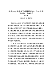 在县(市)区委书记抓基层党建工作述职评议会议上的讲话倪岳峰(2016年12月27日)党的十八大以来,以习近平同志为核心的党中央高度重视全面从严治党,将其纳入“四个全面”战略布局来推进。在基层党建工作方面,习近平总书记明确指出,党的工作最坚实的力量支撑在基层,反复强调要牢固树立大抓基层的鲜明导向,坚持抓基层、抓基础不放松,把基层党组织建设成为坚强的战斗堡垒。近期连续召开的全国国企党建工作和全国高校思想政治工作会议,进一步彰显了党中央抓基层党建工作的鲜明导向和坚定决心。12月24日上午,省委召开2016年度市委书记抓基层党建工作述职评议会,尤权书记在会上强调,要准确把握我省基层党建工作形势,充分发...