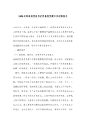 公司党支部书记2024年抓党建述职报告按照公司党委要求,我就2023年度抓党建工作简要述职如下:一、履职情况我始终秉承“抓好党建是本职,不抓是失职”的工作理念,坚持党建引领,讲政治、强作风、聚合力,认真履行第一责任人职责,主要工作体现在以下六个方面:(一)把政治建设放在首位。以习近平新时代中国特色社会主义思想为指导,认真贯彻中央的《关于加强党的政治建设的意见》和新时代党的建设总要求,严肃党内政治生活。充分利用主题党日、支部活动等形式,通过精心的教育引导,使支部党员坚定政治信仰,增强政治自信。一年来,支部全体党员坚守政治立场、政治方向、政治原则和政治道路,与党中央和上级党组织始终保持高度一致,成...
