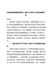 纪检监察教育整顿党课讲稿:做敢于斗争善于斗争的纪检监察干部同志们:刚才我们一起参观了XXX纪念馆,大家再次重温了红军二万五千里长征这段辉煌的历史,相信大家对中国共产党和红军谱写的这一壮丽史诗又有了更深的感悟,特别是对发生在XX附近的湘江战役有了更深的认识。下面,我将根据《中共中央关于开展全国纪检监察干部队伍教育整顿的意见》文件精神,给大家分享一堂“做敢于斗争善于斗争的纪检监察干部”的主题党课,希望大家能够有所收获,有所启发。今天的内容,我想从两个方面展开来说。一、先跟大家分享下关于敢于斗争善于斗争的必要性和紧迫性。党的XX大制定了当前和今后一个时期党和国家的大政方针,取得了一系列丰硕的政治成果...