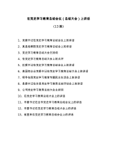 (13篇)党组织书记在党史学习教育总结大会上的讲话稿汇编(党史学习教育总结会议_)
