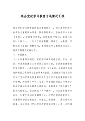 某县党纪学习教育开展情况汇报我县党纪学习教育始终在县委的领导下,把开展党纪学习教育作为重要政治任务,围绕目标要求,坚持原原本本学《条例》,加强警示教育,强化解读和培训,推动《条例》入脑入心,让党员干部受警醒、明底线、知敬畏,不断深化《条例》理解运用,推动党纪学习教育走深走实。现将开展情况汇报如下。一、开展情况(一)部署落实到位,党纪学习教育迅速启动。中央、省委、市委党的建设工作领导小组会议后,县委高度重视党纪学习教育。一是迅速传达学习。X月X日,县委召开县委党的建设工作领导小组会第X次会议,及时传达习近平总书记关于党的纪律建设重要论述及党纪学习教育重要指示批示精神,传达学习中央、省委、市委党的...