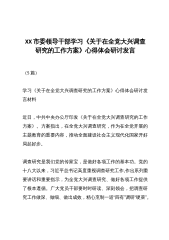 XX市委领导干部学习《关于在全党大兴调查研究的工作方案》心得体会研讨发言