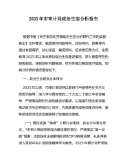 关于本单位2025年度政治生态分析报告(精品)为深入贯彻落实全面从严治党战略方针,精准把握本单位政治生态状况,推动党建工作与业务工作深度融合,根据上级党委统一部署和年度工作安排,通过专题调研、谈心谈话、查阅资料、征求意见等方式,对本单位政治生态建设情况进行了全面深入的分析研判。现将有关情况报告如下:一、总体评价2025年以来,本单位坚持以习近平新时代中国特色社会主义思想为指导,深入学习贯彻党的二十大和二十届二中、三中全会精神,坚持把全面从严治党作为一切工作的基础保障,以党的政治建设为统领,持续加强党风廉政建设,深入推进反腐败斗争,政治生态整体呈现持续向好态势。广大党员干部政治意识明显增强,党内政治生活更加严肃规范,廉洁文化氛围日益浓厚,选人用人导向更加鲜明,正风肃纪反腐成效显著,权力运行监督...