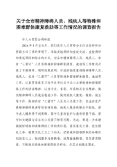 关于全市精神障碍人员、残疾人等特殊和困难群体康复救助等工作情况的调查报告
