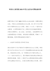 XX街道党工委2025年度民主生活会班子对照检查材料(六个带头)根据中央、自治区党委、市委和区委统一部署,XX街道党工委班子紧扣2025年度民主生活会主题,在深入学习习近平新时代中国特色社会主义思想、党的二十届三中、四中全会精神、习近平总书记系列重要讲话和重要指示批示精神基础上,严格按照规定步骤,扎实做好会前准备。党工委理论学习中心组围绕主题开展了3次专题学习研讨,班子成员深入分管领域、包联社区开展调研座谈12次,累计与党员干部、社区工作者、居民代表等开展谈心谈话80余人次,并通过设置意见箱、线上征集等多种形式,广泛征求辖区党组织、党员群众意见建议四大类共计37条。班子成员主动认领、深刻反思,为开好本次民主生活会奠定了坚实思想基础和工作基础。现将班子对照检查情况报告如下。一、对照六个方面查摆...